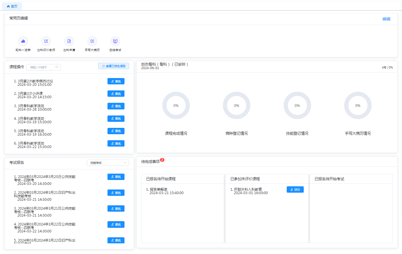 自主研發(fā)了由住院醫(yī)師規(guī)培系統、規(guī)范化培訓考核題庫、以及臨床技能培訓三個大模塊組成的住院醫(yī)師規(guī)范化管理系統,在系統標準配置的框架下,能夠針對不同醫(yī)院的個性化需求進行細化調整和功能拓展